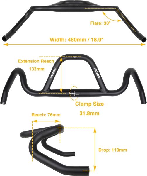 Manillar en aluminio gravel 480 mm, con avance central